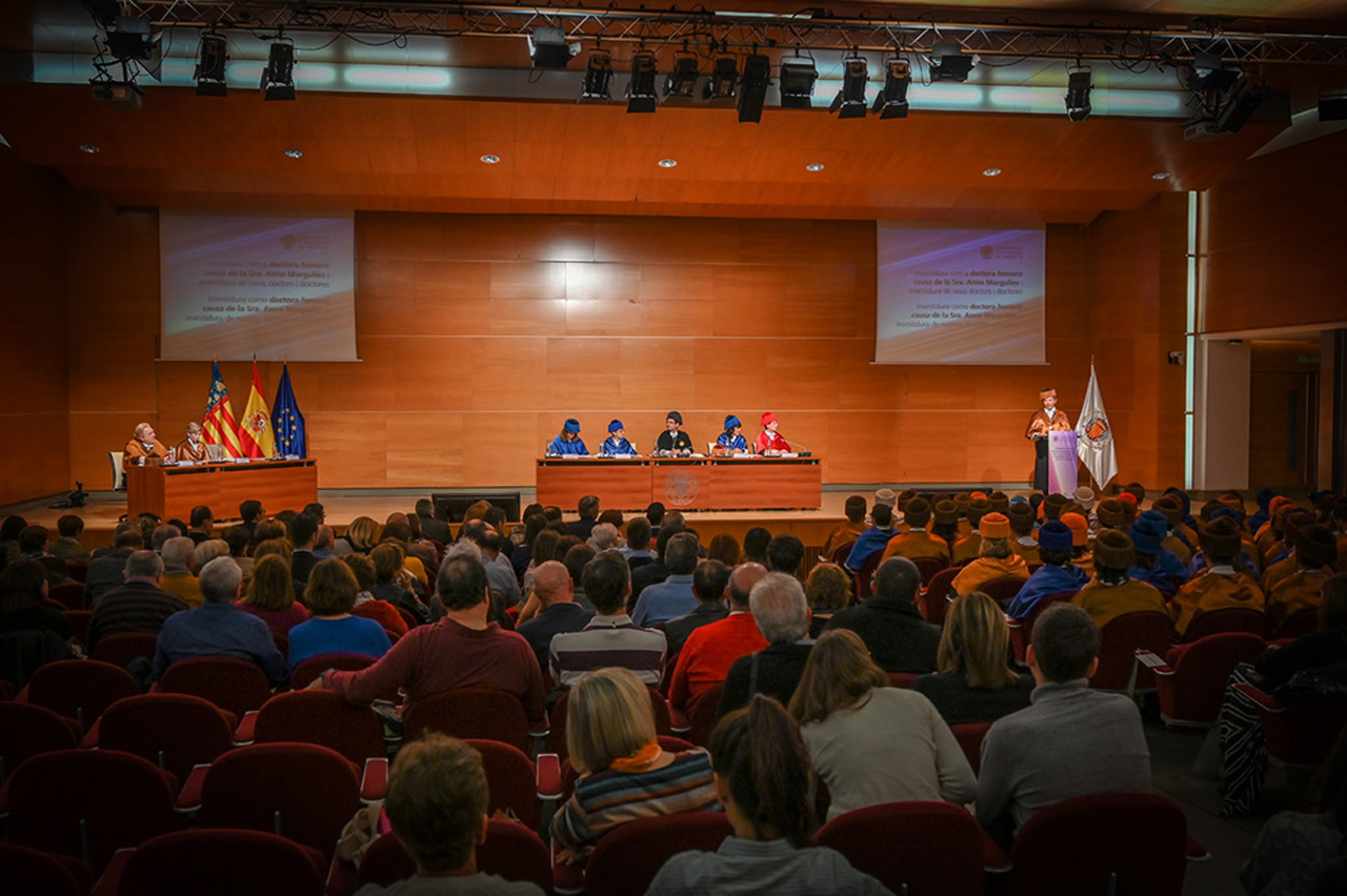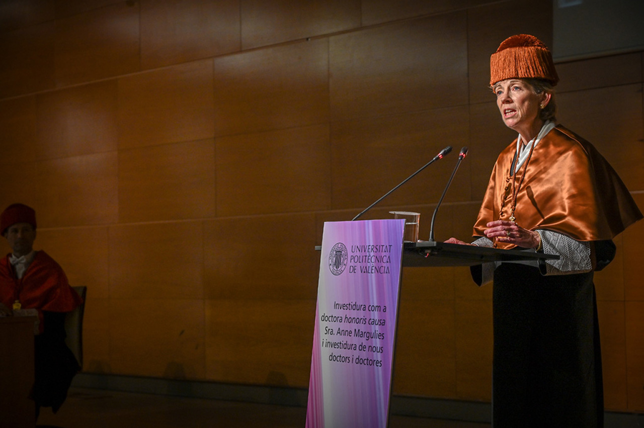 La Universitat Politècnica de València celebró el día 21 de noviembre a las 12h, en el Paraninfo, el Solemne Acto de Investidura como doctora honoris causa de la Sra. Anne Margulies y investidura de nuevos doctores y doctoras.